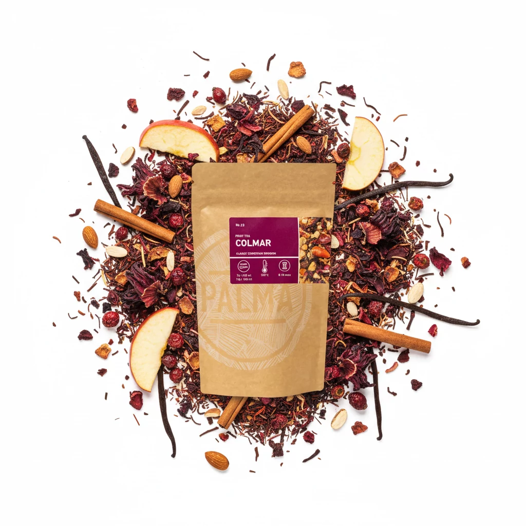 Összetevők: Almadarabok, hibiszkusz, csipkebogyóhéj, aprított MANDULA, fahéj, rooibos, természetes aroma, bourbon vanília kivonat